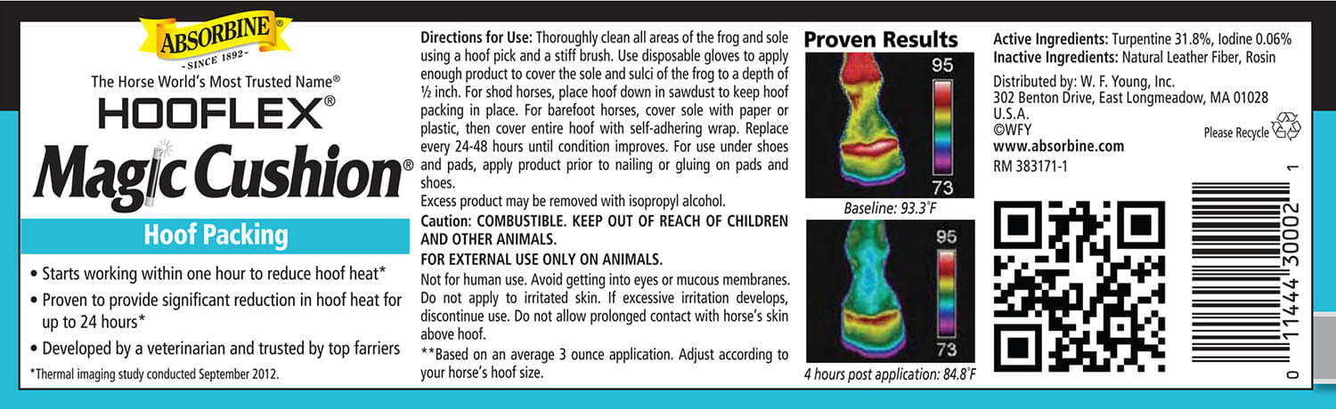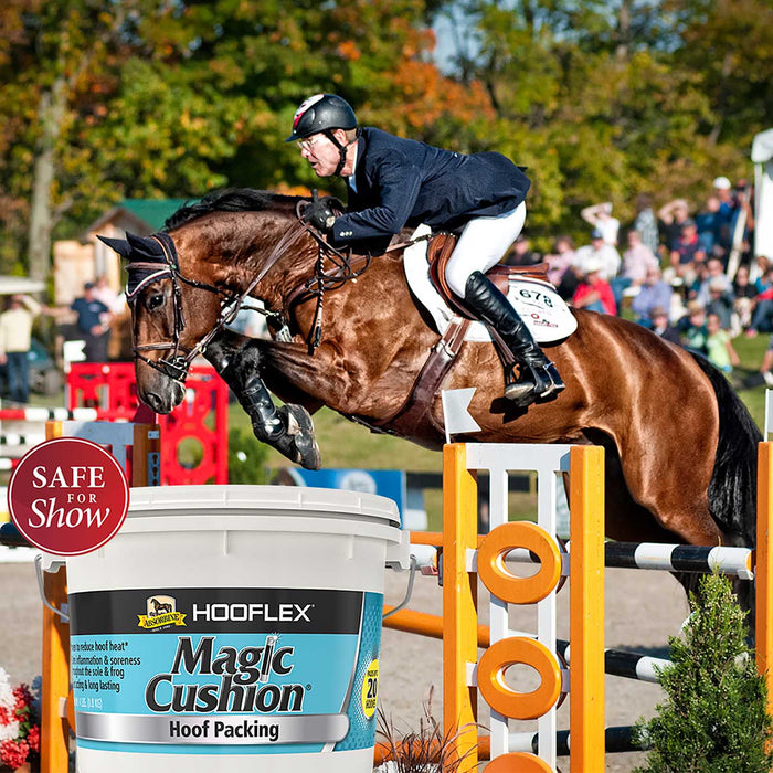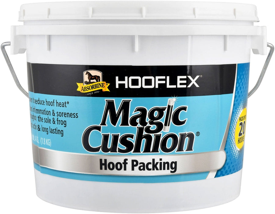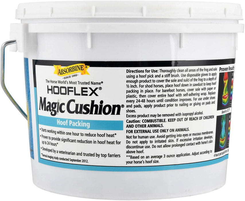 Veterinary formulated to work like magic on sore feet, Magic Cushion hoof packing starts working to reduce hoof heat within one hour, and then for up to 24 hours.