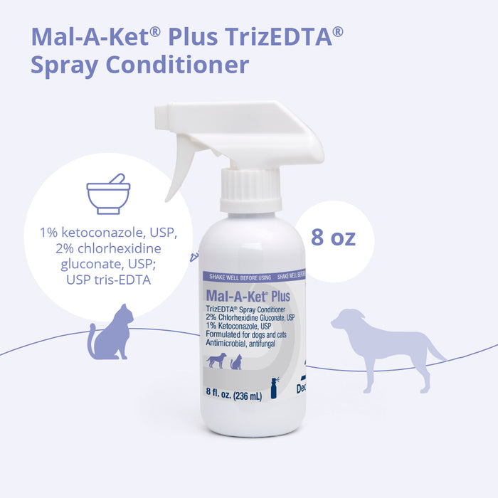 An easy-to-use spray for healthy skin in pets with conditions responsive to ketoconazole and/or chlorhexidine. Anti-fungal and antibacterial properties combat infections, promoting well-being for cats and dogs.