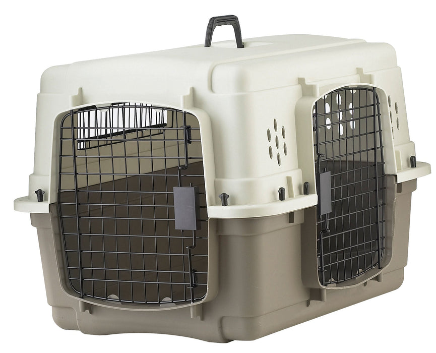 Twice as nice! The Pet Lodge Double Door Portable Plastic Pet Crates include a second door for added flexibility in use and transport. They feature updated styling and colors and are designed to meet the requirements of the International Air Transport Association (IATA). The easy-to-assemble design includes durable wire doors and vents and rugged polypropylene construction, which is strong enough to withstand the rigors of travel and regular use.
