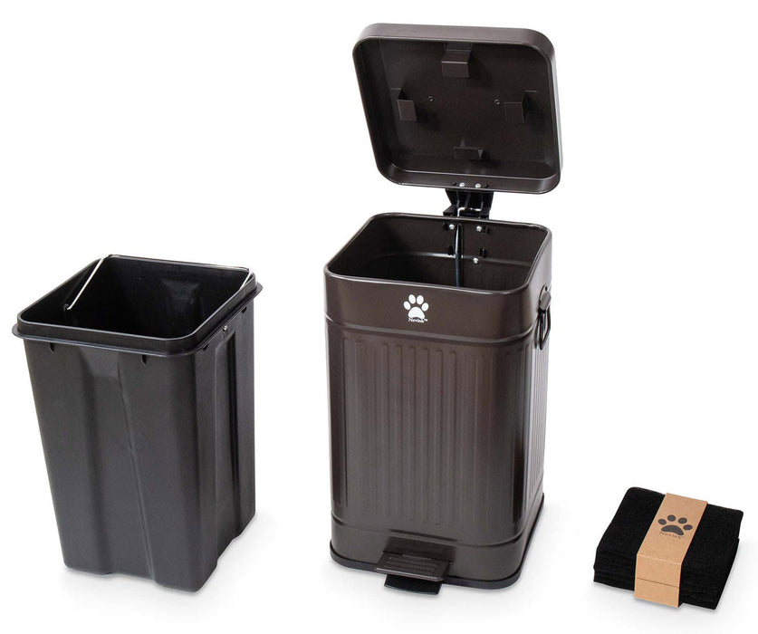 Nevink Dog Poop Trash Can & Filters for Outdoors – 12 Liter, Odor Control, Hands-Free, Weather Resistant