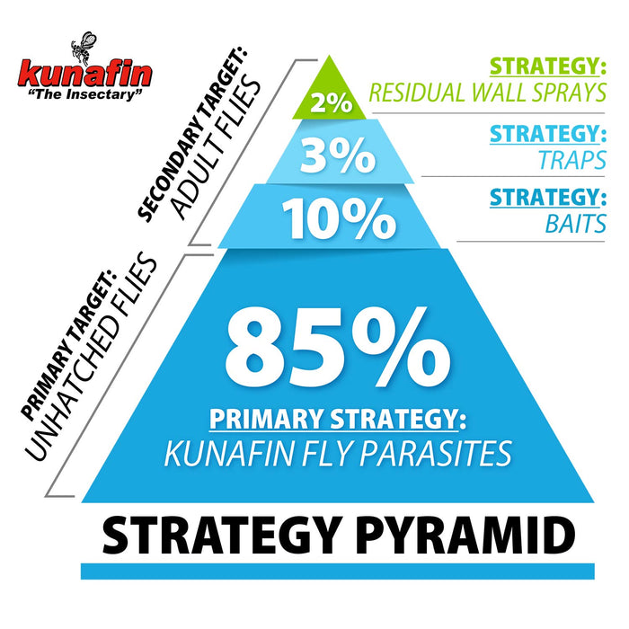 Fly parasites are a very important part of a Total Fly Management Program. Tiny Kunafin parasites attack fly pupa preventing flies from hatching yet will not bother you or your animals. They are host specific.