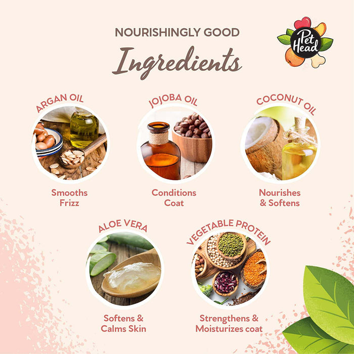 The Pet Head Quick Fix 2-in-1 Shampoo and Conditioner is designed to make bath time quicker and easier, leaving your dog soft, clean, and cuddly in half the time. This fabulous formula is infused with three nourishing oils—argan, coconut, and jojoba—to hydrate and protect your pooch's skin and coat. With a delightful peach fragrance, featuring fruity, sweet, and powdery notes, it will leave your dog smelling fresh and lovely. Free from parabens, surfactants, dyes, gluten, and nuts, Pet Head products are safe and gentle for your pet. Proudly vegan and cruelty-free, all ingredients are transparently listed on the packaging.
