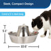 With this fountain, pets can drink the bubbling water from the tower, or from the bowl (which is awesome) because your pet needs 1 ounce of water per 1 pound they weigh every day. This fountain has 360-degree water access which lets your pet drink from any side they choose. The ultra-quiet design of this stainless-steel fountain causes the water to softly bubble over the tower (instead of a free-falling stream) which is great for even the shyest cats.