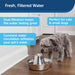 The high-quality stainless-steel material is scratch resistant making it durable and safe for your best friend. To keep water fresh, we use dual-filtration technology to remove pet hair, debris, bad tastes and odors. A carbon filter, foam filter and fountain pump work together so your pet will always have clean water to drink, and the constant water circulation helps to prevent bacteria growth.