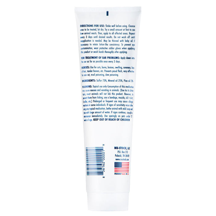 Nu-Stock is an effective topical treatment that provides fast relief for most animal skin, hair, and fur conditions. It contains special mixed oils, Sulphur, and natural resins... No Steroids.