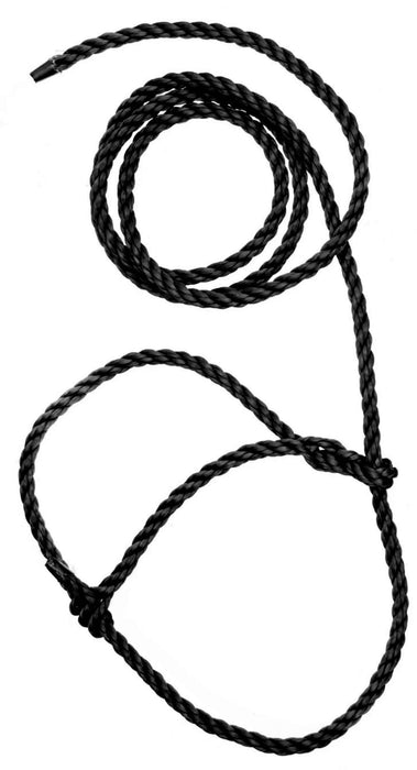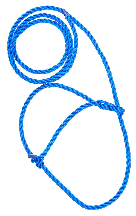 Made of 3/8" polypropylene rope with a 5' lead. Adjustable ends melted and secured by galvanized wire.