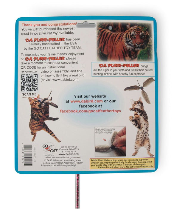 The Purr Peller Wand Cat Toy Kit brings exciting, realistic playtime to your feline friend! Designed by the makers of Da Bird, this interactive toy mimics the motion of a real bird in flight, stimulating your cat’s natural hunting instincts. The feathered propeller attachment spins and flutters as it moves through the air, keeping your cat engaged with every pounce and chase. The included glitter wand adds extra sparkle to playtime fun, and the kit also comes with a convenient refill head for extended use.