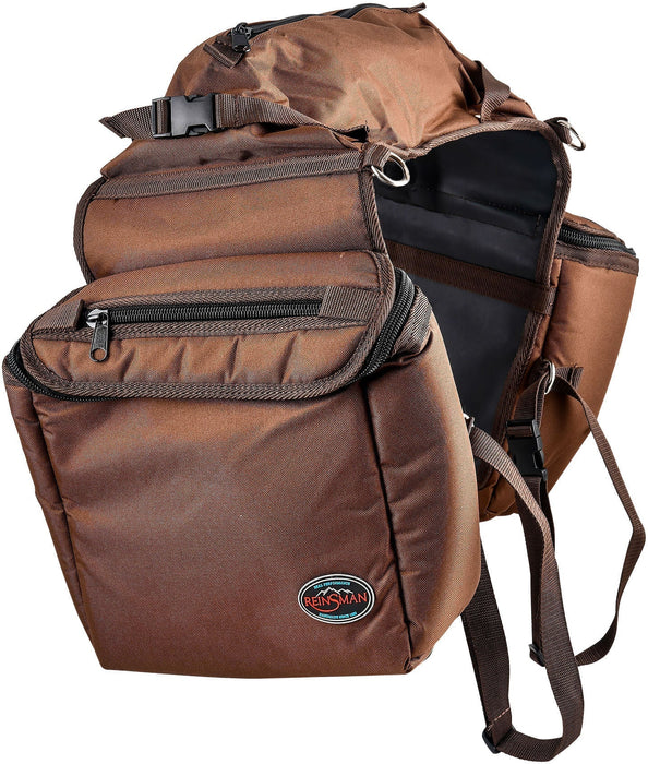 The Reinsman Saddle Bag is a double-sided, leak-proof cooler with a cantle bag. Made with 3 points of connection to your saddle to keep it securely in place (grommets, dee rings, and rigging connection strap with buckles).