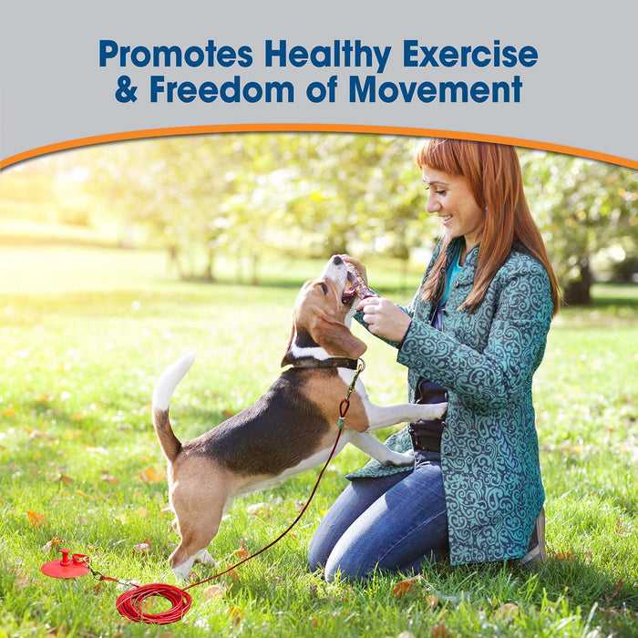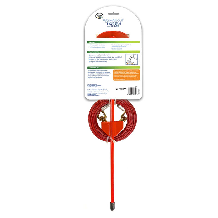 Roam About Dog Tie Out Stake with Cable, Red, 25 Ft