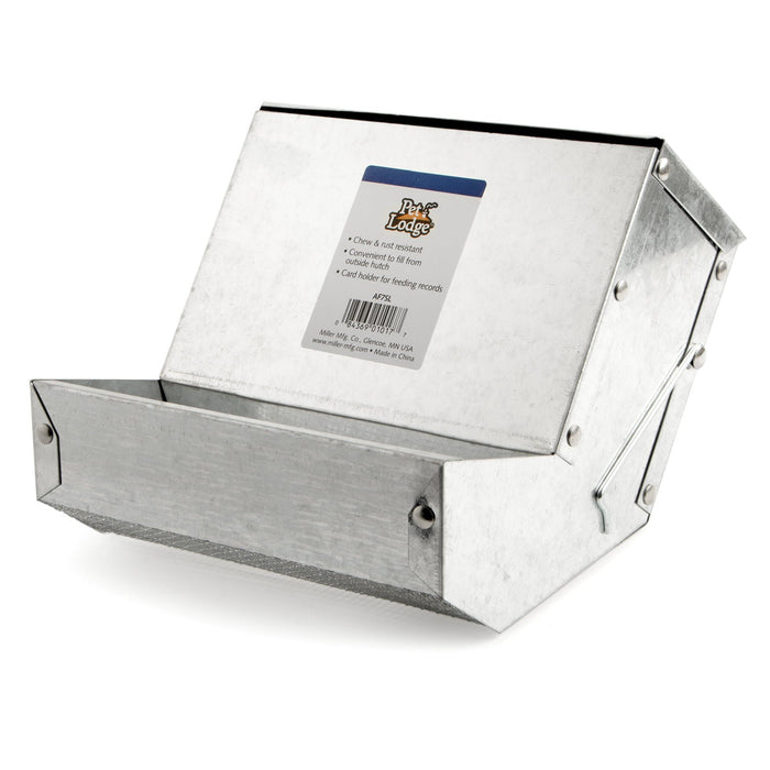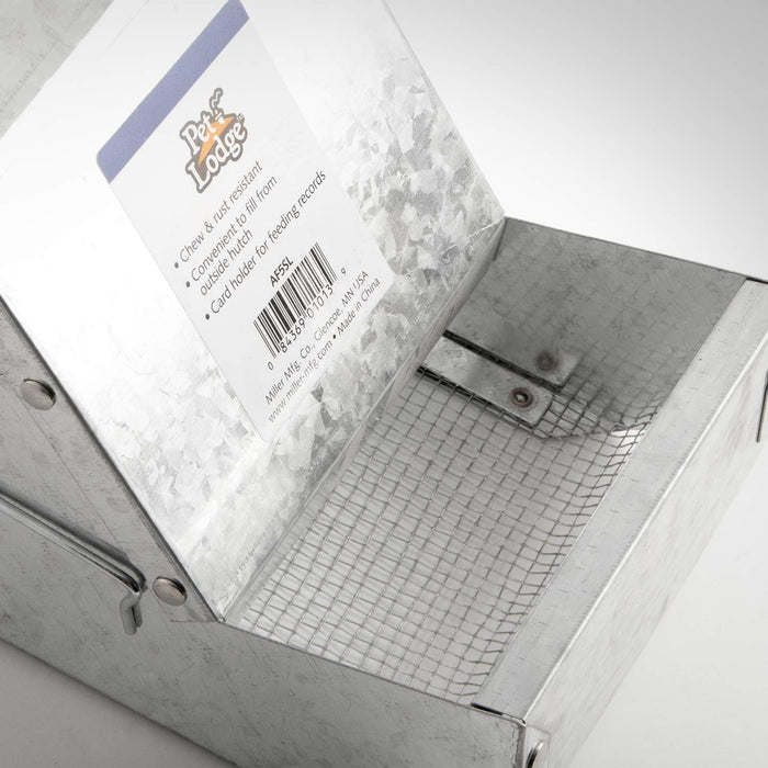 Pellet feeder gives a continual supply of food, while eliminating feed scratching and waste. Will not overflow, nor will the animals foul feed with urine or droppings. Top fill makes feeding quick and easy.