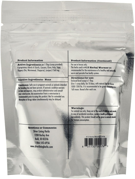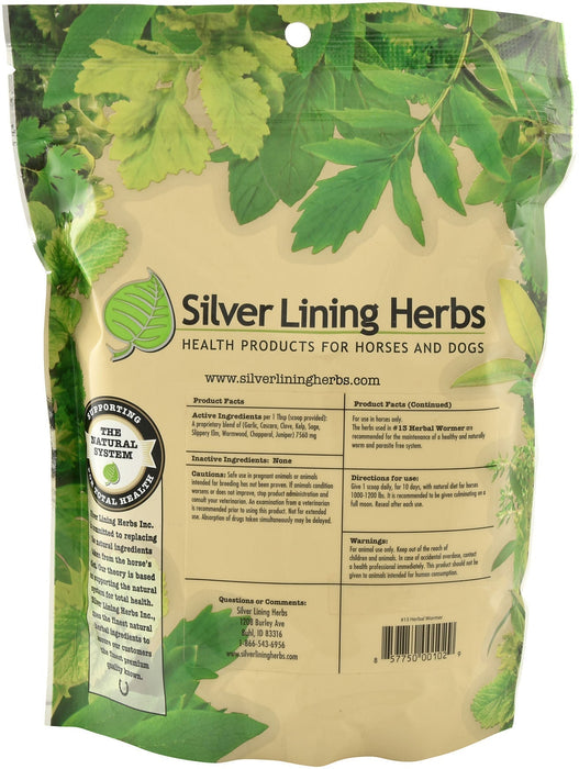 The herbs used in this combination are for the maintenance of a healthy and naturally worm and parasite-free system. This combination works by simply maintaining an environment that is not welcoming to parasites and worms: they are opportunistic and need an unclean environment to thrive. The Herbal Wormer may be beneficial in horses that are underweight, have parasites in their manure, have a rough hair coat, or persistently rub their tail.