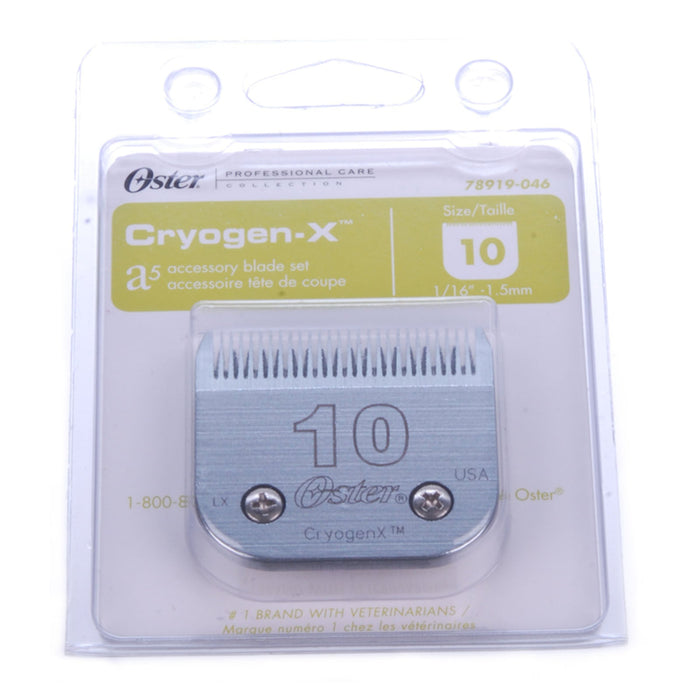 The Oster® Size 10 CryogenX Grooming Clipper Blade is designed with innovative heat-reducing technology and legendary sharp cutting performance, ensuring the coolest and sharpest blades possible for professional grooming results.