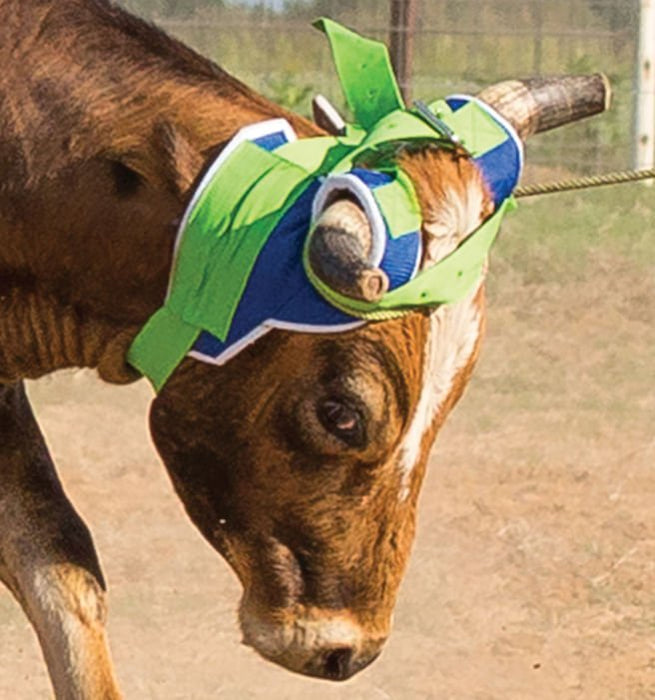 Heavy weight nylon on the outside with a vented felt bottom for airflow. Protective ear flaps with tapered horn holes to allow for full line of sight. Easily adjusts and stays securely in place with nickel plated hardware.