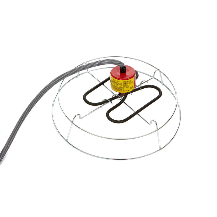 The Sinking Tank De-icer operates at the bottom of the tank where it is less likely to be disturbed by livestock, protecting both the equipment and animals. The strong, durable, stainless steel heating element is thermostatically controlled for efficient operation. Rugged and weather-resistant construction handles the elements. The thermostatic control, coupled with thermal feedback, protects the unit from overheating. The thermostat is positioned above the heating element to ensure safety in low-water conditions. Each de-icer comes complete with a galvanized wire guard for use in plastic tanks. Recommended for use in 100-300 gallons of water. 6-foot cord with durable anti-rub protector. LOCKNDRY compatible.