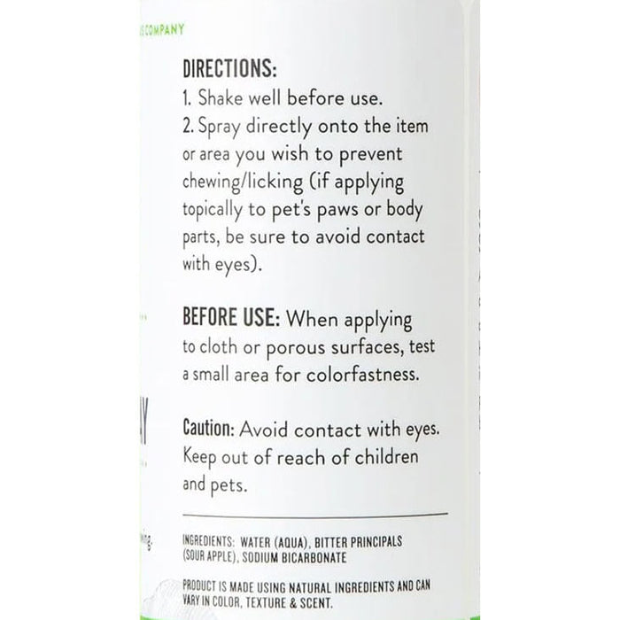 Shake well. Spray directly onto the item or area you wish to prevent chewing or licking. If applying topically to your pet’s paws or body, avoid contact with the eyes.