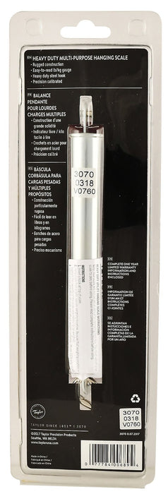 Taylor Hanging Scales are heavy duty, multi-purpose scales that are useful for a variety of farm and ranch needs. The rugged construction and easy-to-read lb/kg gauge make it ideal for outdoor use. The heavy-duty steel hook can be used in conjunction with our calf sling (ITEM# VJA1) for weighing newborn calves as well as weighing buckets for feed or seed. The scale is precision calibrated for accurate measuring.