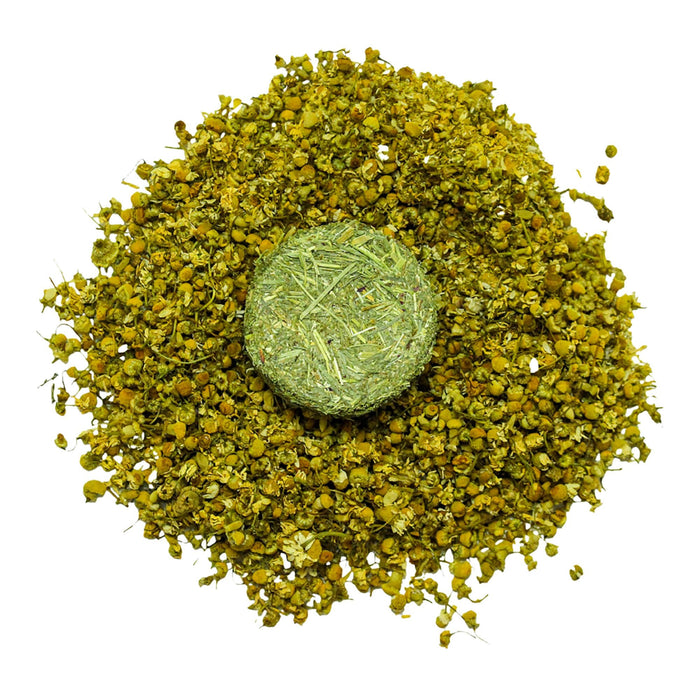 100% All-Natural Ingredient List: 100 % All-Natural Premium Sun Cured Timothy Hay, and Chamomile