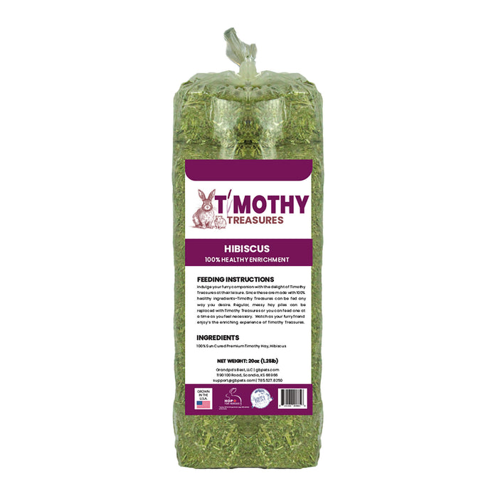 100% All-Natural Ingredient List: 100 % All-Natural Premium Sun Cured Timothy Hay, and Hibiscus