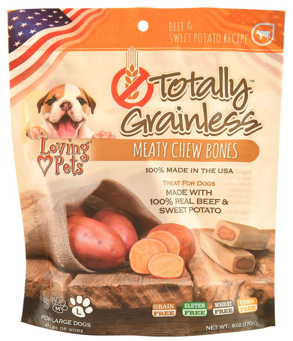 All natural Meaty Chew Bones are made in the USA with real meat and real fruit and vegetables. Like a real bone, the outside is hard with a soft, tasty center. Great for teeth and gums.
