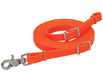 Constructed from our exclusive coated webbing, Brahma Webb. This extra-long trail rein offers the look of leather with the easy care and weather resistance of synthetic webbing. Nickel plated conway buckles and scissor snap.