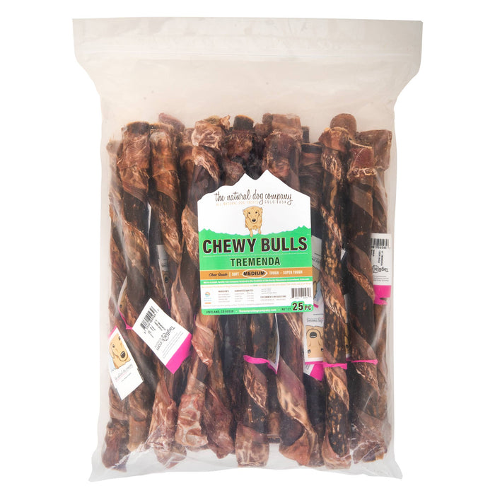 Give your dog a flavorful, long-lasting treat with the Tremenda Chewy Bull Dog Chew. Made from all-natural beef ingredients, this softer chew is perfect for senior dogs or those with sensitive teeth. Packed with natural flavor and high-quality protein, it offers a satisfying chewing experience while supporting dental health.