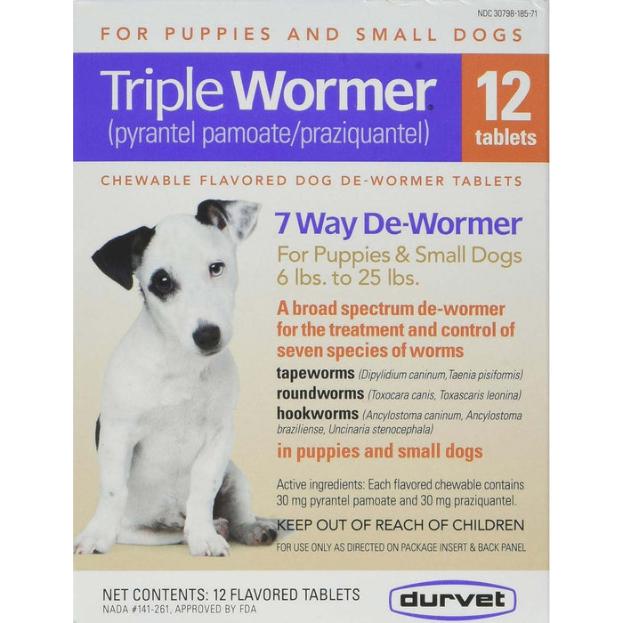 Triple Wormer is for the treatment and control of roundworms (Toxocara canis, Toxascaris leonina), hookworms (Ancylostomacaninum, Ancylostoma braziliense, Uncinaria stenocephala) and tapeworms (Dipylidium caninum, Taenia pisiformis) in dogs and puppies.