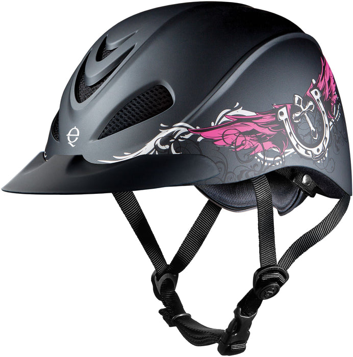 Low-profile Western helmet. The Rebel incorporates western fashion in a sporty helmet ideal for adventurous riders in and out of the arena.