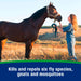 Fly spray Contains 0.1% Pyrethrins, 1% Citronella, 1% Piperonyl Butoxide to repel and kill stable, horse, face, deer, house, and horn flies, mosquitoes and gnats on horses.
