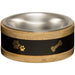 The stainless steel Black Label Wooden Ring Dog Bowl from Loving Pets has a thick wooden ring-shaped base featuring a beautiful black label. The single wooden dog bowl holder and easy-to-clean stainless steel interior have skid-resistant, protective pads to prevent sliding. These handcrafted dog bowls come with a wooden base treated with a durable, protective finish. A decorative band of black powder-coated wrought iron, beautifully engraved with a bone and gold paw pattern, wraps around the shallow channel. Loving Pets' Black Label Wooden Ring Dog Bowl is tip-resistant and loved by pet owners for its bacteria-resistant, dishwasher-safe stainless steel bowl.